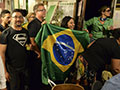 La suite est digne d’une telenovela. Vannes pro-camerounaises des uns pour contrer les envolées lyriques des Brésiliennes amoureuses de leur Seleção, hurlements, chants, pas de samba, joie,hum qu’il était bon le dessert paulista… tout ce petit monde réuni en ordre et progrès s’est entendu pour vibrer à l’unisson.