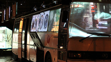 Les spectateurs sont invités à un voyage au sein d’un bus en mouvement transformé