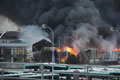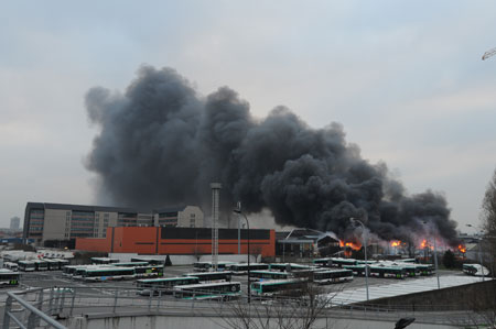 Deux d’entre-eux ont été légèrement blessés après que les flammes aient gagné des entrepôts voisins.