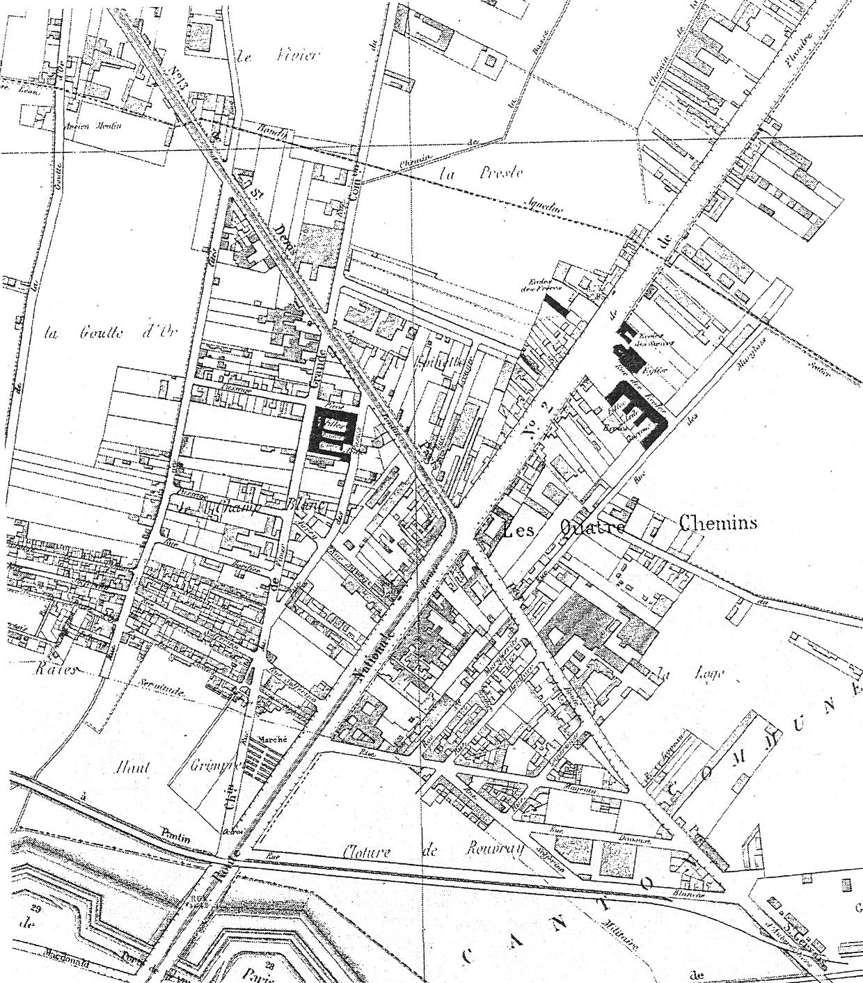 1800 - 1868 - 1899 - 1899-bis - 1920 - 1946 - Cités et passages - Les 4 chemins en 1854 - Les 4 chemins en 1874
