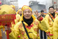 Sur la place Rosa Parks, habillée de rouge et jaune, les 5 dragons ont attendu patiemment que les personnalités présentes viennent « les réveiller ».