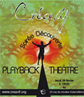 L’association Créavif organise une soirée découverte autour du Playback théâtre le jeudi 28 février 2013 à partir de 19 h 30 au 25, rue du moutier à Aubervilliers.