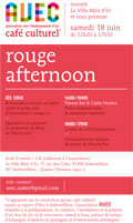 Samedi 18 juin 2011, entre 12 h 30 et 17 h 30, l’Association Vers l’Établissement d’un Café culturel s’empare de la Villa Mais d’Ici et présente Rouge Afternoon.