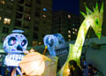 Une girafe et une libellule géantes, des têtes monumentales parées de cœurs et autres motifs multicolores, mais aussi des sobres pyramides dans la plus fidèle tradition, plusieurs dizaines de lanternes d’osier et de papier ont fait irruption dans la ville, samedi soir, au rythme de percussions brésiliennes, sous les regards médusés et souvent enchantés des passants et des riverains.