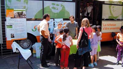 L’Energie Bus de Plaine Commune sur la place de la mairie lors de la semaine du développement durable.