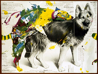 [Dessin de Grapus]. France : Arts graphiques de France, 1985. 119 X 156 cm, imprimé coul. [Sérigraphie]. Signée et datée en bas à droite. [Chien du dessus, rouge et jaune].
