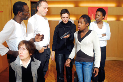 Mise en situation, avec les comédiens de la compagnie Naje et des jeunes, de sujets sur la discrimination.