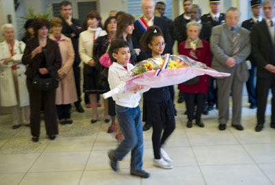 de la déportation en déposant une gerbe devant le Monument aux morts, en mairie. - (format jpg - 37.5 ko - 22/06/2009)