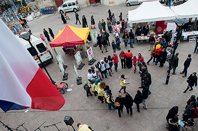 - Le village solidaire d’une vingtaine d’associations s’est fait le théâtre d’un Flash mob surprise, à l’initiative de l’association Action papillon, sur la place de la Mairie, à l’occasion de la Semaine de la solidarité internationale dont Aubervilliers s’est fait largement l’écho (samedi 16). (format jpg - 46.9 ko - 03/01/2014)
