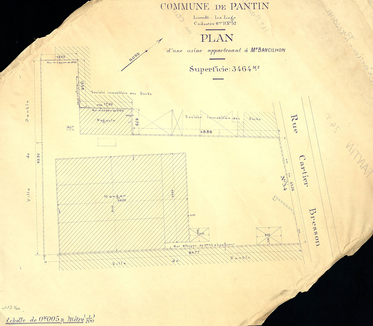 Aubervilliers - Archives municipales - 11Z140 - Plan d’une usine à Pantin, appartenant à M. Brancilhon (format jpg - 226.5 ko - 16/06/2016)Aubervilliers - Archives municipales