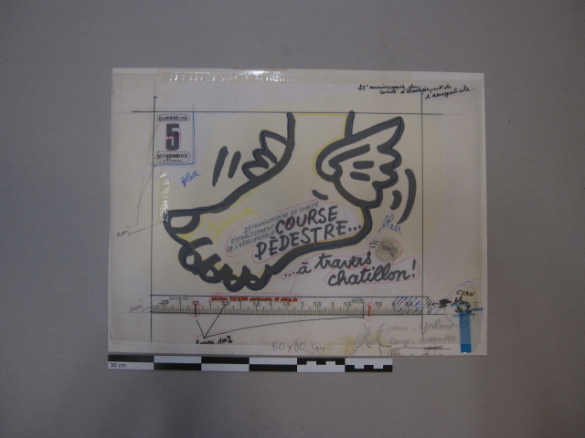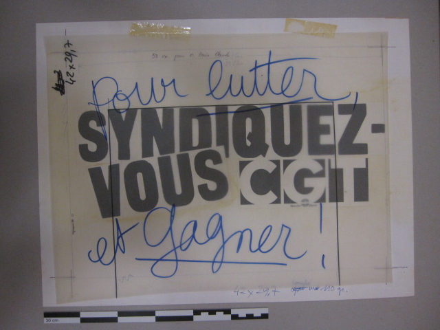 - Les élèves ont d’une part poursuivi le reconditionnement d’une partie du fonds Grapus. Afin de protéger au mieux les éléments préparatoires ayant servi à la création des affiches du fonds, les élèves ont réalisé des pochettes de conservation dans un matériaux neutre assurant ainsi de meilleures conditions de manipulation des documents dans les magasin d’archives et protégeant les documents pour les années à venir.
