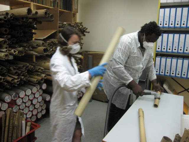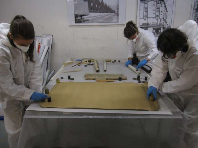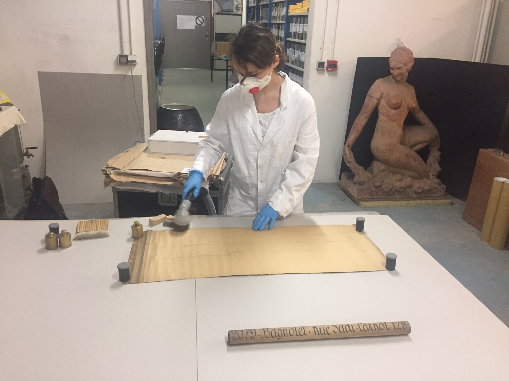A nouveau cette année, l’Institut national du patrimoine a installé l’un des huit chantiers des collections des élèves restaurateurs du patrimoine de première année et des élèves conservateurs du patrimoine (promotion Mérimée) aux Archives municipales. Du 29 mai au 2 juin, ces jeunes futurs professionnels du patrimoine sont venus se confronter à des projets concrets de conservation préventive.