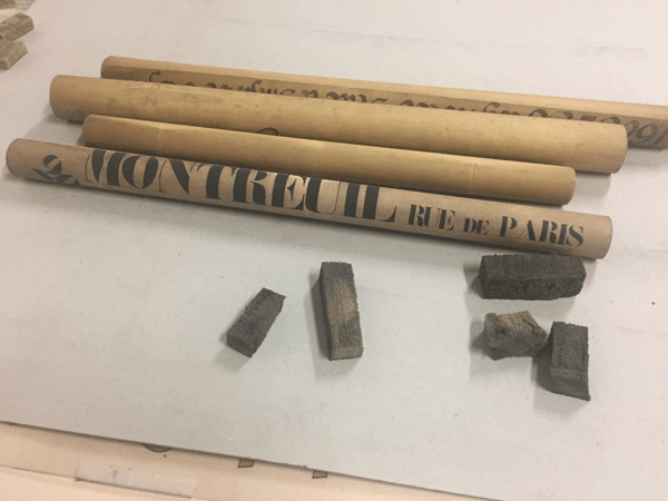 - Mais le challenge de l’année résidait dans un autre fonds. Il y a quelques années, les archives municipales ont accepté d’accueillir le fonds d’un cabinet de géomètre de Bagnolet, complémentaire du fonds Maillard déjà conservé à Aubervilliers. A l’aune du Grand Paris, ces fonds principalement constitué de plans et de documents les accompagnant donnent à voir les évolutions urbaines de l’ensemble du Nord-Est parisien. La mission étaient donc d’établir un état du fonds dit "Bagnolet" et de proposer une méthodologie ainsi que des préconisations en vue du reconditionnement et du traitement de ce fonds. S’appuyant sur un retour d’expérience d’une autre institution, les élèves ont imaginé la réalisation d’un meuble en nid d’abeille afin proposant ainsi une solution efficace et originale pour entreposer ce fonds d’archives volumineux.