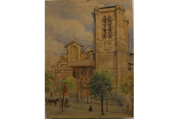 - L’église Notre Dame des Vertus en travaux, aquarelle, acquis par la commune en 1906